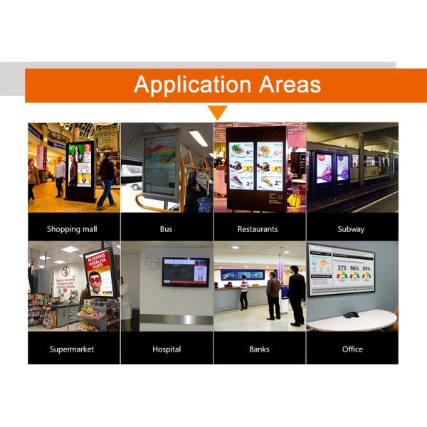 | 1.Application fields:public places ,for example,shopping mall, restaurant,airport, square, commercial buidings,etc. 2.Outer shell is made of extra good quality metal material, which is painted by powder-spray craft work. 3.Support shockproof and dust proof function. 4.Adopts high transparent tempered glass (4-6 mm ) as protection layer toprevent lcd/led panel being broken or distorted. 5.Locking system for anti-thieves, prevented the storage devices ( SD/CF cards ) from being stolen. 6.Support IR Remote controller, user can use remote controller to operate the whole lcd. ( key buttons is optional ) 7.Build-in speakers: 2 x 5W. Amplifier / 3.5mm audio jack is optional. 8.Playing circles automatically when powers on . 9.Allowing memory of breakpoint/AD management system. 10.Automatically generating playing list/Mixed displaying of videos,images and music. | |